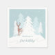 Primer Cumpleaños Winter Wonderland, Onederland Napkin. Con pequeños copos de nieve, un bonito ciervo y pinos. Fije un tono dulce y mágico para el fiesta con este diseño coordinado de servilletas de personalizable. Perfecto para el primer cumpleaños de tu pequeño muñeco de nieve.