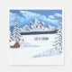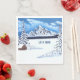 Las servilletas con una hermosa escena invernal, incluyendo montañas cubiertas de nieve, cabaña y verduras. El texto se puede personalizar. Obra de arte original de W.B.