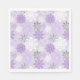 Los fiestas comen con estilo con estas servilletas de papel con temática de copos de nieve de invierno, con un patrón de copos de nieve morado, blanco y purpurina de plata.
