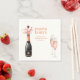 Toast to forty in modern style with this chic champagne-themed birthday napkin. Designed on a light off-white background, the napkin features a dynamic popping champagne bottle on the left in sleek black and rose tones, paired with the playful headline “Popping Forty.” Two pink champagne glasses in the lower right add a celebratory finish, while refined serif fonts keep the party details elegant and easy to read.