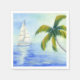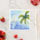 Playa tropical. Yate en el mar Palma en un día soleado. Acuarela. El ilustracion acuarela fue dibujado y escaneado. La imagen será a la vez un buen regalo y una magnífica decoración interior.