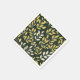 Seamless pattern of stylized yellow and cream leafy branches against a dark green, speckled background.