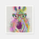 Esta acuarela tiene un retrato colorido de una cebra con gafas naranjas adornadas con flores | Por Fab Funky. ID de la imagen: 192221D