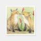 Una pintura acuarela de dos kits de zorros rojos en primavera adorna estas servilletas fiestas.
