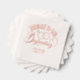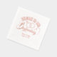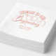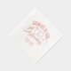 Una hermosa servilleta de Relieve metalizado de oro rosa con un florido florecimiento y nombres de novia y novio con fecha boda.