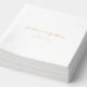 Servilletas de papel de aluminio para bodas de estilo clásico con un diseño simple pero elegante con sus nombres en letra cursiva y los detalles de su evento en una tipografía serif.