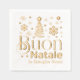 Buon Natale Italian Christmas Party Personalized Custom Foil Napkins Real Foil Stamped Paper Napkins features a modern Christmas tree with snowflakes with the text "Buon Natale" in modern script typography with your personalized family name below in elegant script typography. Perfect for Christmas parties and celebrations. Created by Evco Studio www.zazzle.com/store/evcostudio