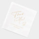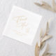 En esta colección de bodas se utiliza un tipo de letra con firma, escrito a mano, combinado con un sans serif moderno para crear un tono cálido e íntimo para su gran día. La servilleta de papel boda que se muestra aquí presenta una caligrafía elegante 'Gracias', un pequeño adorno cardíaco, sus nombres y fecha boda todo en un hermoso Relieve metalizado de oro. Busque ID771 para ver otras piezas y opciones de color para este conjunto.