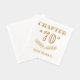 Capítulo 70 Setenta y setecientos años Nombre Personalizado Real Relieve metalizado Papel estampado Napkins presenta el texto "Capítulo 70" en tipografía de escritura moderna acentuada con hojas florales y personalizada con su nombre personalizado a continuación. Perfecto para fiestas de 70 años. Creado por Evco Studio www.zazzle.com/store/evcostudio