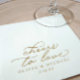 Cheers Wedding Napkins – These elegant wedding napkins feature the phrase “cheers to love” in graceful gold calligraphy script. The simple, modern typography creates a timeless look that’s perfect for the bride and groom’s celebration. Ideal for wedding receptions, cocktail hours, or engagement parties, these napkins add a warm, sophisticated touch to your décor.