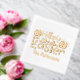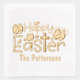 Happy Easter Bunny Ears Guión Nombre Personalizado Relieve metalizado Napkins Real Relieve metalizado Stamped Paper Napkins presenta el texto "Happy Easter" en la tipografía moderna de escritura acentuada con huevos de Pascua y una cruz y personalizada con tu nombre o texto personalizado. Perfecto para celebrar Pascua con estilo. Creado por Evco Studio www.zazzle.com/store/evcostudio