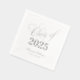 Elegante clase de letra de guión de las servilletas de papel de Relieve metalizado plateado de graduación 2025. Perfecto para una fiesta de graduación o un fiesta de graduación universitaria.