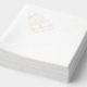 Relieve metalizado dorado Perro Boda Cocktail Napkin con "¡bebidas sobre nosotros!" en un estilo de escritura moderno escrito a mano y texto personalizado como nombres de mascotas debajo.