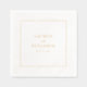 These wedding napkins feature a minimalist and elegant design with a clean, off-white background framed by a delicate gold border. The layout is centered around simple serif typography in a harmonious gold hue, creating an understated yet sophisticated look. Perfect for formal occasions, the design emphasizes clarity and timelessness, making it ideal for weddings that celebrate refined taste and simplicity.