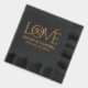 Agregue un toque extra de sofisticación a la celebración de sus 50 años de bodas de oro con estas servilletas estampadas con lámina metálica, que presentan los años de casados en la letra O de la palabra amor. Personalice con los nombres de la pareja, años de casados y fechas de matrimonio. Cualquier año de casados se puede utilizar, ¡solo cambie el número!
