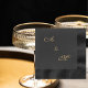 Relieve metalizado dorado. Pareja de Iniciales. Elegante boda negro acuñó una servilleta de cóctel. Glam. Cursiva. servilletas de bar boda.