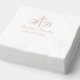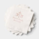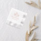 El diseño muestra la imagen de una elegante cruz entre las iniciales de Bride y Groom mostradas en un elegante tipo de letra Nuptial. Los nombres de Bride y Groom, junto con la fecha de boda, aparecen a continuación en el mismo tipo de letra Nuptial. El cliente tiene la opción de elegir entre Relieves metalizados de oro, plata o oro rosa para el diseño. La opción de seleccionar el color de la servilleta también está disponible cuando se solicita.