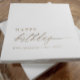 Celebre con estilo elevado con estas servilletas personalizadas de cumpleaños de color dorado que presentan un diseño elegante de "feliz cumpleaños" en letra script. El diseño minimalista moderno combina la elegante letra script con tipografía limpia para un aspecto que se siente simple y elegante.
