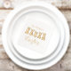 Happy Easter Cute Bunnies Personalized Name Relieve metalizado Napkins Real Relieve metalizado Stamped Paper Napkins presenta el texto "Happy Easter" en una tipografía de escritura elegante acentuada con bonitos conejos y personalizada con tu nombre o texto personalizado. Perfecto para celebrar Pascua con estilo. Creado por Evco Studio www.zazzle.com/store/evcostudio