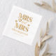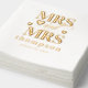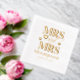 Toallas de boda de tipografía romántica para un boda lesbiana con MRS y MRS escritas en negritas letras de Relieve metalizado de oro con corazones de Relieve metalizado de oro "y" rápidos. Las servilletas de boda lesbiana estampadas con Relieve metalizado de oro con un toque romántico con corazones dorados alrededor del diseño tipográfico MRS y MRS. Relieve metalizado dorado de la Sra. y la Sra. boda servilletas para una recepción de bodas LGBTQ o una cena de ensayo LGBTQ con un diseño tipográfico romántico en Relieve metalizado dorado.