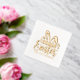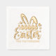 Happy Easter Bunny Ears Relieve metalizado de nombre personalizado Napkins Real Relieve metalizado estampado Papel Napkins presenta el texto "Happy Easter" en la moderna tipografía de escritura caligrafía acentuada con corazones de amor, huevos de Pascua y orejas de conejo y personalizado con tu nombre o texto personalizado. Perfecto para celebrar Pascua con estilo. Creado por Evco Studio www.zazzle.com/store/evcostudio
