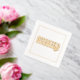 ¡RELIEVE METALIZADO DORADO REAL! Esta servilleta de papel se muestra con una huella Huskies Paw. Imprimir con licencia de Relieve metalizado dorado blanco en color