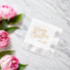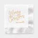 REAL FOIL! Merry Christmas and your family name are featured on these elegant white holiday cocktail party napkins. Choose gold, silver or rose gold foil.