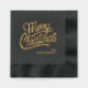 REAL FOIL! Merry Christmas and your name is featured on these elegant black holiday cocktail party napkins. Choose gold or silver foil.