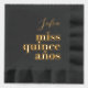 Celebre su hito con estas servilletas negras con el impresionante diseño de Miss Quince Años, Relieve metalizado de oro. Perfecto para cualquier dulce quince, le dan un toque atrevido y elegante a su mesa fiesta y le dan un tono para una celebración inolvidable. Personalízalos con su nombre para un toque de acabado único.