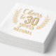 Saludos a 30 años Treinta cumpleaños Nombre personalizado Real Relieve metalizado estampado Napkins de papel presenta el texto "Saludos a 30 años" en la tipografía moderna de escritura caligráfica acentuada con hojas florales y personalizada con su nombre personalizado a continuación. Perfecto para fiestas de 30 años. Creado por Evco Studio www.zazzle.com/store/evcostudio