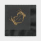 Añada un toque espeluznante y personalizado a su boda con estas servilletas de papel. Estas servilletas negras desechables presentan un ilustracion de manos esqueléticas en forma de corazón que enmarcan los nombres de la novia y del novio y la fecha del boda. El gráfico y el texto están en un Relieve metalizado dorado. El estilo macabro es perfecto para bodas de octubre o eventos con temática de gótico.