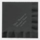 Eleva tu elegante cena o evento especial con estas servilletas personalizadas de papel negro. Perfecto para bodas, eventos corporativos o fiestas formales, cada servilleta presenta un guión sofisticado en la impresión de Relieve metalizado real. Elija entre Relieve metalizado de plata, oro rosa o oro para que coincida con su tema. Vendidas en conjuntos de 50, estas servilletas le dan un toque de lujo y refinamiento a cualquier mesa.