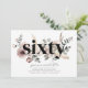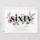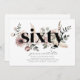 Flores acuáticas modernas y hojas de boho con la palabra 'sesenta' en negro. ¡Perfecto para tu fiesta de cumpleaños número 60!