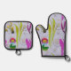 Cheerful and colorful floral pattern with abstract and botanical elements on horizontal striped background. Lavender color.
