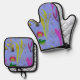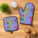 Cheerful and colorful floral pattern with abstract and botanical elements on horizontal striped background. Violet blue color.