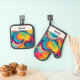 Bring colorful culinary style to your kitchen with this groovy oven mitt and pot holder set. Featuring a colorful, swirling design in a pop art style, this set brightens up everyday baking and cooking with a bright flourish. An ideal gift for the contemporary home chef.
