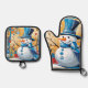 The abstract elements of the image create a whimsical and imaginative winter scene. The snowman, with its top hat and blue scarf, stands out with its colorful buttons, adding a playful touch. Spherical ornaments contribute to the festive atmosphere, while their shapes and colors blend into the background in a surreal manner.