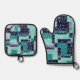 Set De Manoplas Abstracto de los tenedores de macetas moradas verd
