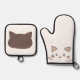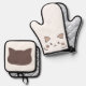 Set De Manoplas Adorable Cat Hand-Drawn Mitt and Pot Holders