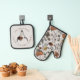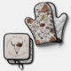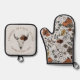 Este kit de personalizado de Día de la Amistad Occidental o de Acción de Gracias para el horno mitt & pot contiene: Un portamaletas con cráneo de vaca occidental dibujado a mano adornado con ilustracion de rosas con tinta negra, con los textos editables "Agradecidos, agradecidos, bendecidos". Personalice su evento y año. Una parra de horno con una cosecha de otoño con un cráneo de vaca adornado con rosas, calabazas, hojas de otoño y bayas. Fondo gris claro.