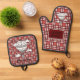 Alegre tartán rojo y blanco diseño de estufa y portacolchón, parte de la colección Plethora of Patterns. Lee Baking Pro en una y la panadería de Alana en la otra. El texto es para personalizar.