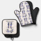 Un mitt de horno y portaobjetos con un personalizado gracioso sobre hombres de nieve, relaciones y aniversarios olvidados. Obra de arte original de Personalizados de DB.