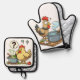Set De Manoplas Apron de pollo de cocina divertida - Hen haciendo