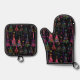 Set De Manoplas Árboles de Navidad psicodélicos en negro
