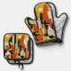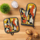 Bring a touch of Art Deco elegance to your kitchen. Our oven mitt and pot holder set, adorned with a bold geometric design, is both a stylish statement and a practical essential for any modern culinary space.
