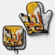 Bring a touch of Art Deco elegance to your kitchen. Our oven mitt and pot holder set, adorned with a bold geometric design, is both a stylish statement and a practical essential for any modern culinary space.