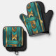 Set De Manoplas Art Deco Geometric Arrows, Gold and Turquoise