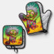 Este juego de manta y portamaletas de horno tiene arte de bruja.
