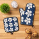 Conjunto de soporte de Oven Mitt & Pot (Edición) de color azul marino tropical y blanco (Edición)