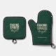 Bring festive cheer to your holiday kitchen with this dark green Baking Spirits Bright oven mitt & pot holder set. Designed in a rich evergreen hue with warm cream lettering, this modern farmhouse style set adds the perfect Christmas touch to baking, cooking, and hosting.